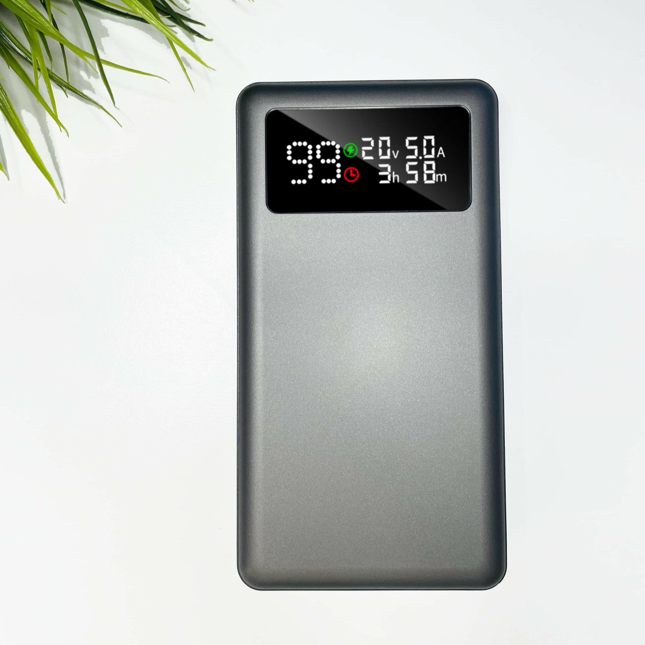 LAKKI - это внешний переносной аккумулятор с двумя портами Type C и умным дисплеем. Способен быстро и безопасно зарядить ваш ноутбук или телефон, а также зарядиться сам. Идеальное решение для подзарядки ноутбуков сотрудников. Объем батареи составляет 25000 mAh. Power bank LAKKI представлен в 3–х цветах: черный, белый и серый.